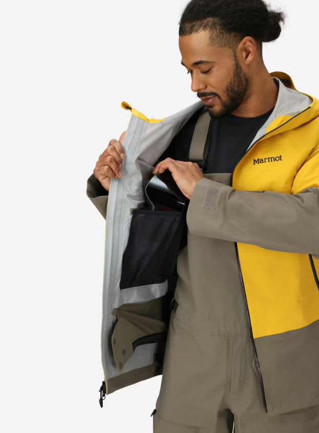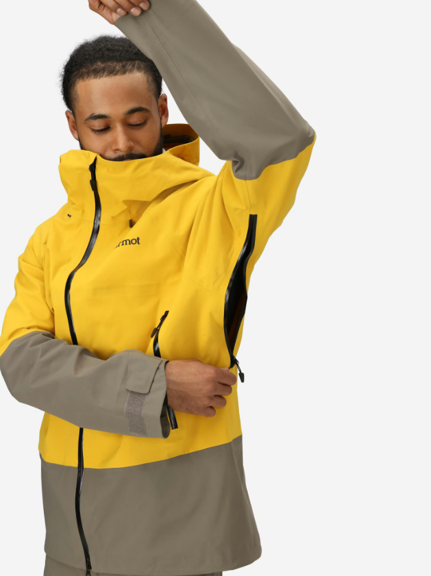 The Marmot Orion Gore-Tex Jacket is engineered as a rugged yet breathable shell for skiing, snowboarding, and alpine adventures. Its 3-layer GORE-TEX® construction provides complete protection against moisture and wind while letting perspiration escape efficiently. This makes it ideal for intense activity in snowy and rainy conditions.