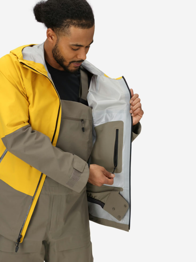 A high-performance men’s ski and outdoor jacket featuring waterproof, windproof, and breathable GORE-TEX® technology, designed for snowsports and harsh mountain environments with functional safety and comfort details.