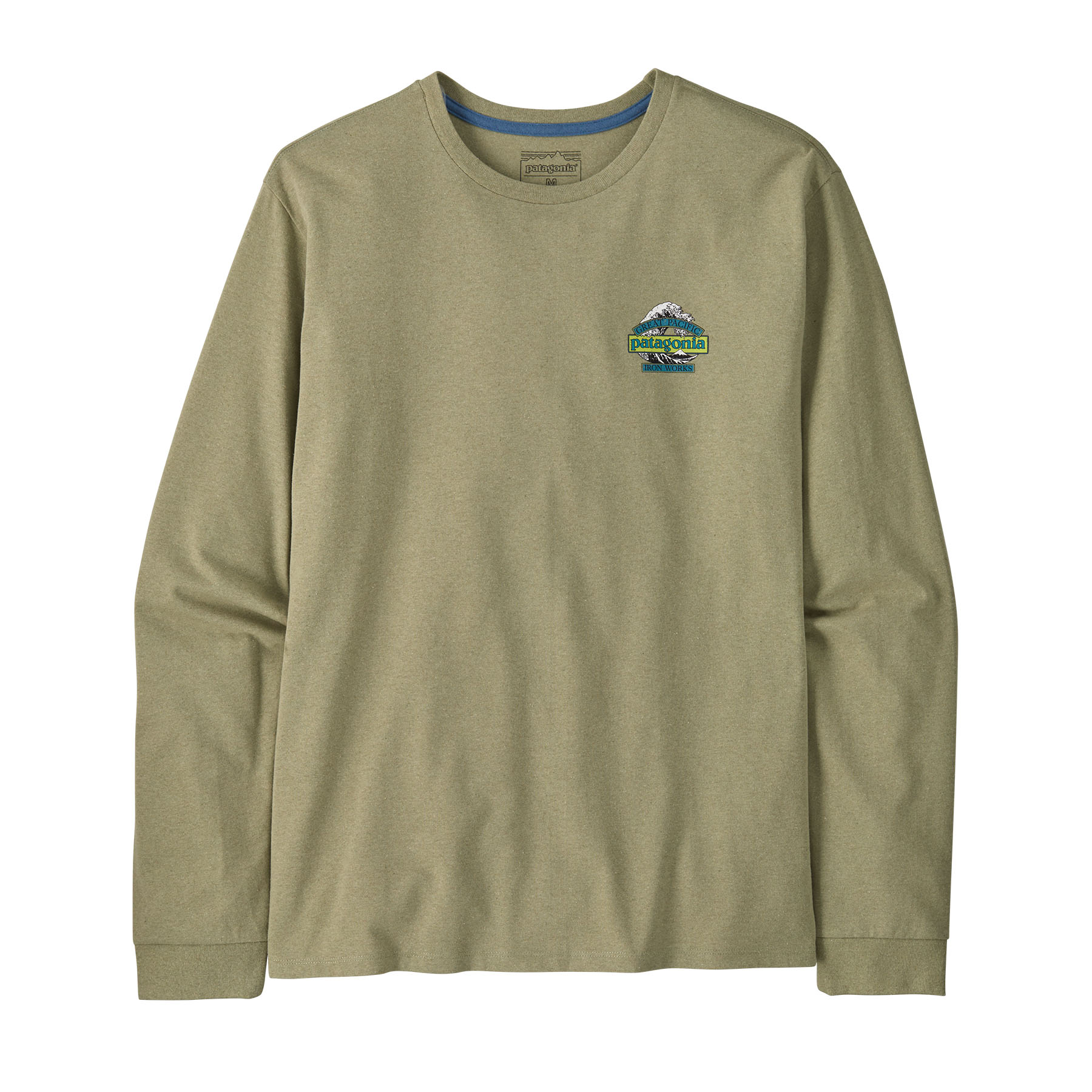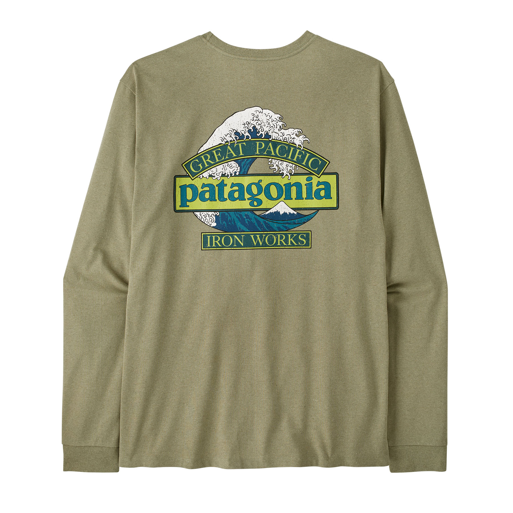 Логото Great Waves съчетава името Patagonia с емблематичната вълна на Hokusai и Great Pacific Iron Works – името на първия магазин на Patagonia, разположен на кратка разходка от някои от най-добрите вълни във Ventura, Калифорния. То е ситопечатано върху Men's Long-Sleeved Great Waves Responsibili-Tee®, класическа тениска с дълъг ръкав и обло деколте, изработена от мека и издръжлива смес 50/50 от рециклиран памук и следпотребителски рециклиран полиестер джърси. Чрез използването на текстилни остатъци и рециклирани бутилки тази 100% рециклирана дреха намалява зависимостта от нови суровини. Know better; do better. Произведена във фабрика със сертификат Fair Trade Certified™.